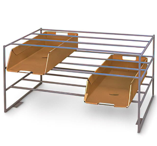 These trays adhere to the same specifications as USPS trays. The 12" trays fit perfectly in the GPMC insert rack. Trays are stackable, but not nestable. Extremely durable, these fiberboard trays stay in circulation for years!