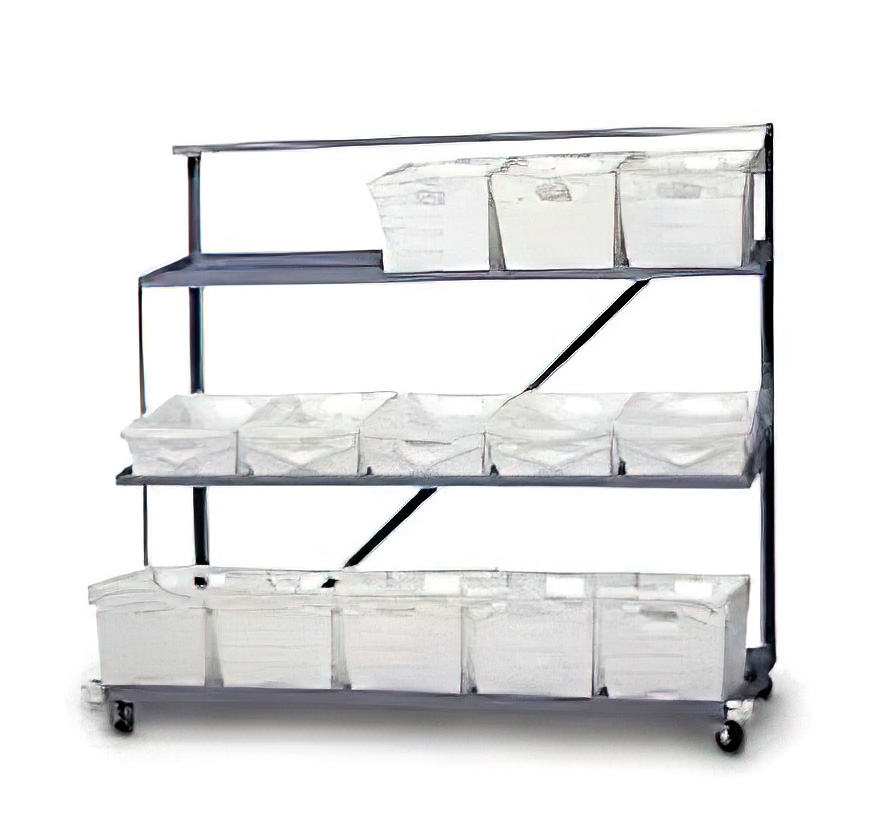 These racks are perfect for sorting spurs, flats, and bulk mail into standard postal tubs. The two upper shelves are slanted to allow for efficient processing.