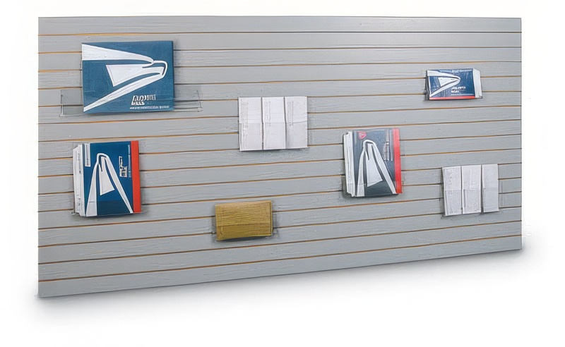 Slatwall has proven to be the most effective way for the U.S. Postal Service to maximize wall space for displays and other items. With many colors and finishes to choose from, Postal Products Unlimited, Inc. can tailor-make Slatwall Panels to fit any budget. On all panels, the half grooves (end cuts) are standard, so that panels may be butted together. Please use N1020426 for crate charges