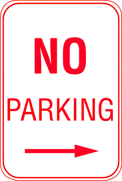 TYPE: STREET SIGN. Aluminum Parking Lot Sign. WORDING: "NO PARKING (Right Arrow)." SIZE: 12" x 18". COLOR: BLACK ON WHITE. SIGN POSTS: Sold separately. See N1026445. ACCESSORIES N1014758-N1014759 Fence Mount Brackets. SHIPPING: USPS.