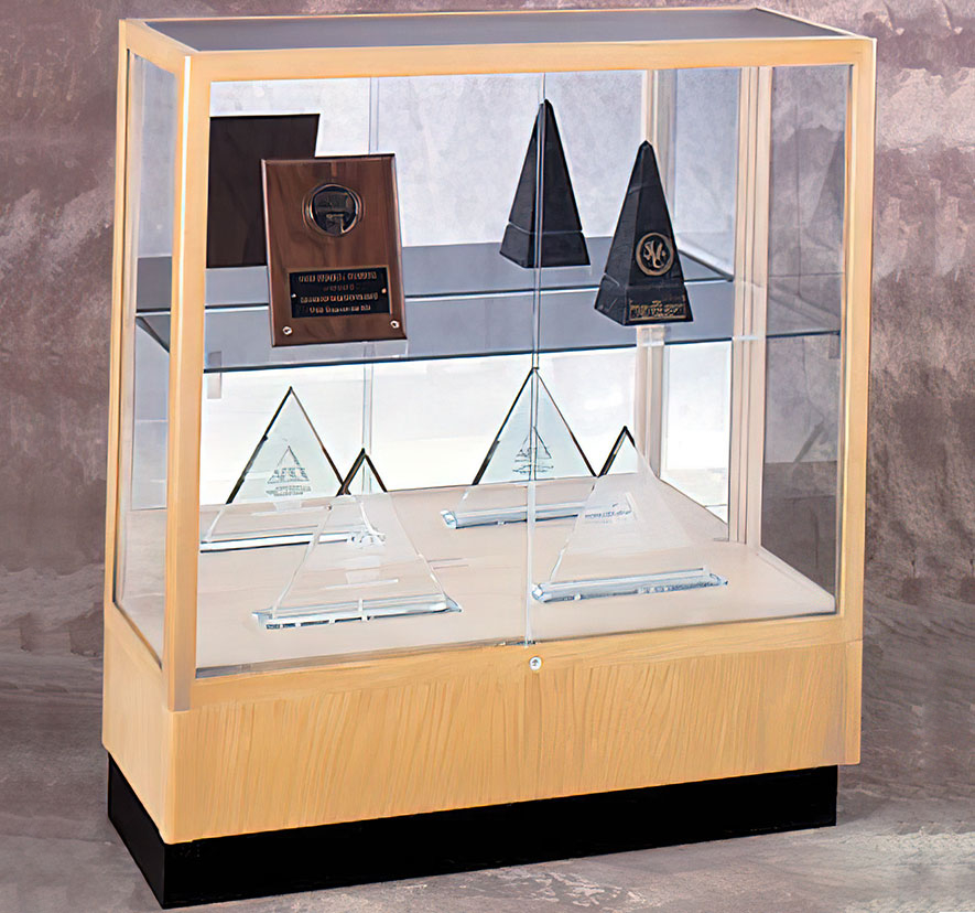 Versatile, free-standing countertop case is ideal for displaying Postal merchandise.