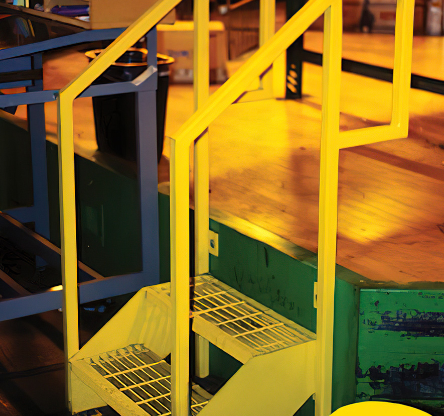 Use these access stairs to reach sortation platforms safely. Access stairs prevent workers from jumping onto platforms to sort mail. Stairs meet & exceed OSHA requirements. Please provide platform height.