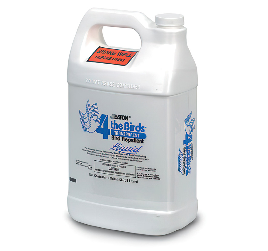 Stop nuisance birds from roosting in unwelcome areas with this liquid bird repellent. The tacky material applies easily as a liquid spray. It does not hurt birds, but just makes them uncomfortable. Repellent lasts for one year under most weather conditions.
