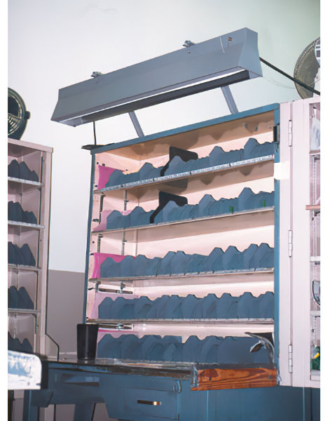 Proper lighting over carrier cases improves efficiency and increases safety. Thousands of Carrier Case Light Fixtures are in use throughout the Postal Service. Drawing shows the proper location to install light fixture over carrier cases. Comes with arms.