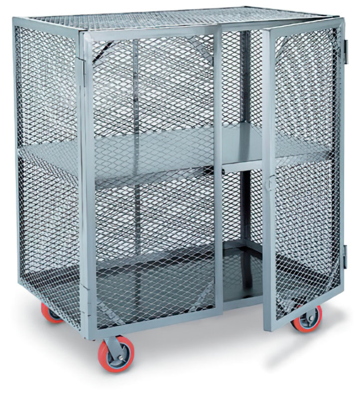 Mail Cart, High Security. 2 Shelf Lockable, Steel Cage. 48"wx30"dx56"h N1018385
