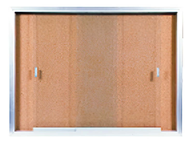 Bulletin Board, Aluminum Frame W/ Sliding Glass Door. Cork. 48"wx36"h N1000906