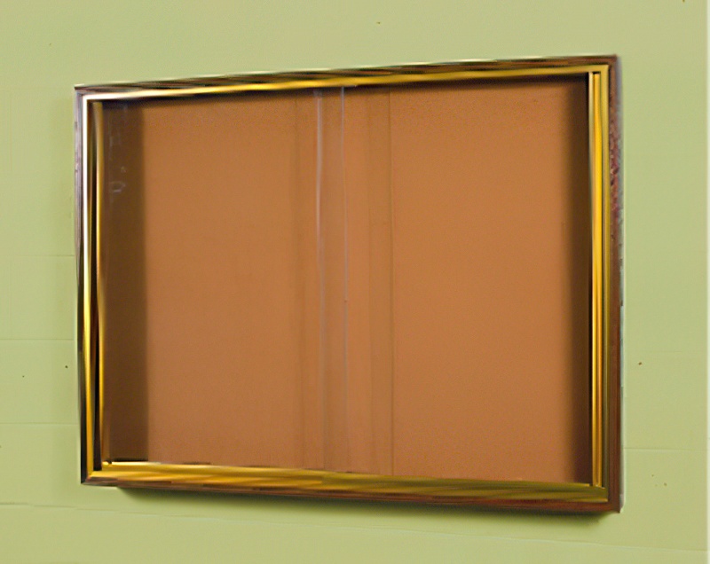 Bulletin Board, Aluminum Frame W/ Sliding Glass Door. Cork. 60"wx36"h N1000907