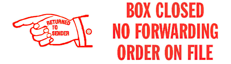 Box Closed No... Rubber Return to Sender Stamp 1-1/4" X 2-1/2" N1001823