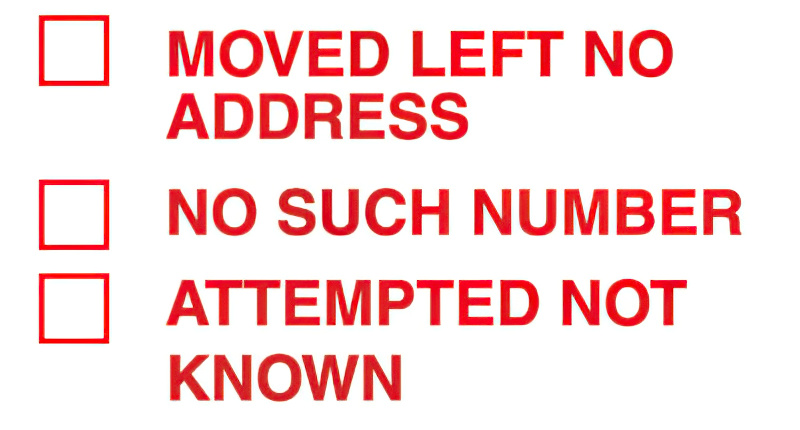 N1029198 Moved Left No Address... Pre-inked Counter Stamp (7109s). Black Ink.