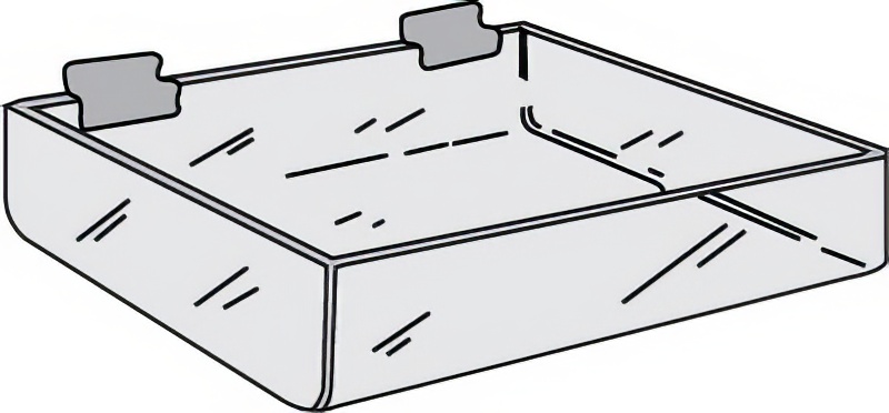Acrylic Merchandise Holder, Slatwall Tray. 12"lx8"wx2"h. Clear. N1002689