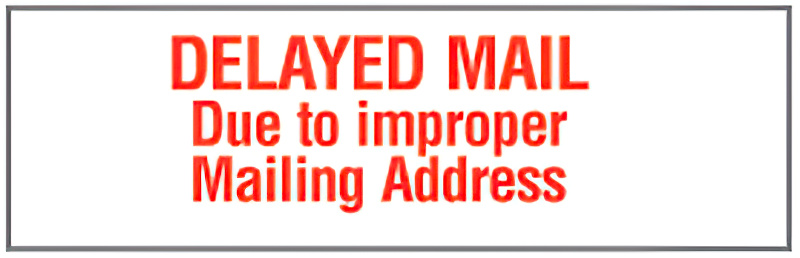 Delayed Mail Due to Improper Mailing.. Rubber Stamp 1/2"x1-11/16" N1001941