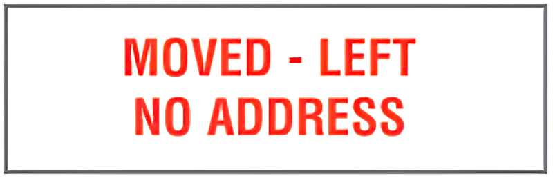 Moved - Left No Address Rubber Stamp 1/2"x1-11/16" N1001950