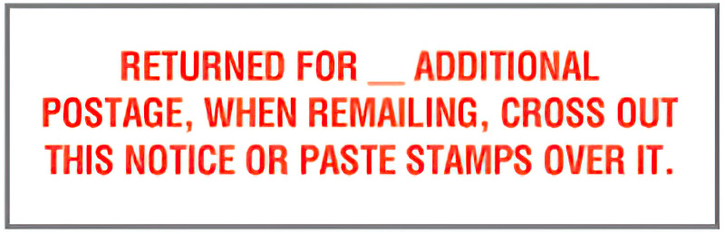 Returned for _____ Additional Postage.. Rubber Stamp 1/2"x1-11/16" N1001952