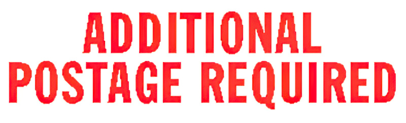Additional Postage Required Pre-inked Stamp 1/2" X1-11/16". Red Ink. S1002200