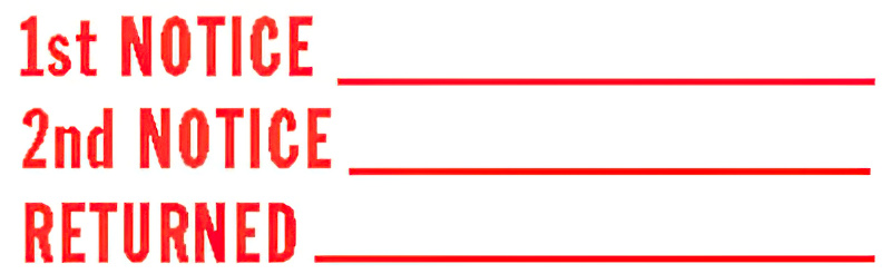 1st Notice _____ 2nd Notice... Pre-inked Stamp. 1/2" X11/16". Red Ink. S1002201