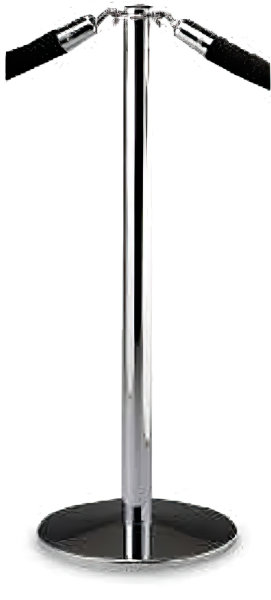 A post with a broad, tapered base, designed to offer maximum stability. 2" dia. steel tube post on large 13-1/2" dia. base. Overall Height: 36". Weight: 25 lbs. Recommended post spacing is 6-feet.