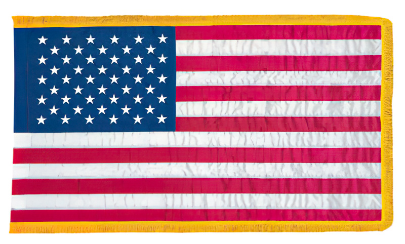 These Indoor American flags are the highest in quality. Handcrafted by expert flag-makers, the flags feature perfectly proportioned stars embroidered on a rich blue field. Stripes are Brilliant Red and Snowy White, with double stitching throughout.