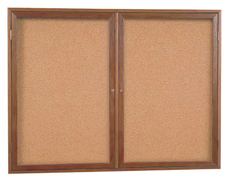 This enclosed, lockable, wood framed bulletin board has a clear acrylic shatter-resistant window displaying messages for all to see while keeping them untouched. Solid disc tumbler locks control access to the corkboard message surface as well as protect against vandalism. A set of 290 white Helvetica font letters and numbers is included (3/4" high).