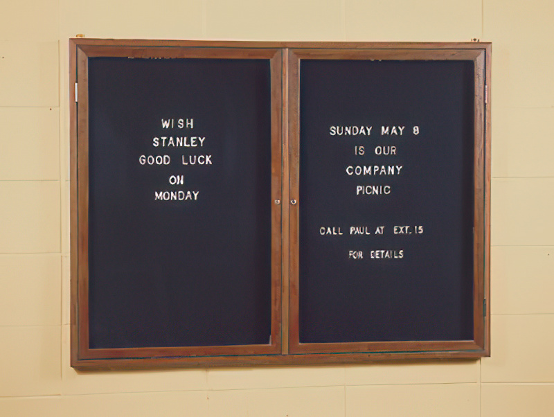 These handsome black felted letterboards feature wood frames and doors surrounding the boards to match traditional decor. Lettering is kept safe behind secure, shatter-proof acrylic doors. Solid disc tumbler locks control access to the message surface as well as protect against vandalism. A set of 290 white Helvetica font letters and numbers is included (3/4" high).