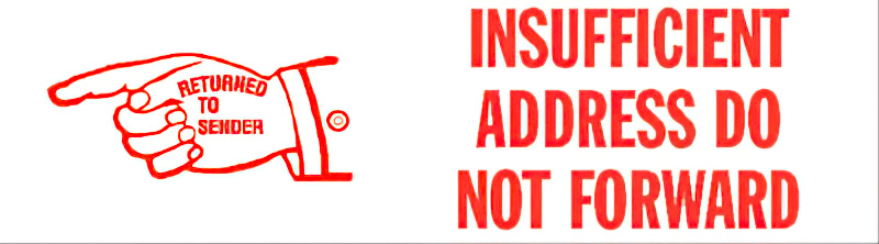 - Stamp reads, "Insufficient Address Do Not Forward"