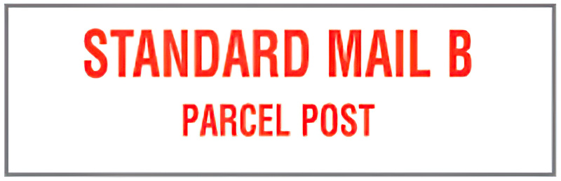 TYPE: Rubber Stamp. IMPRESSION: "STANDARD MAIL B PARCEL POST". IMPRESSION SIZE: 1/2"H x 1-11/16"W. INK COLOR: None. MOUNT: Made with ergonomically designed plastic handle, high-quality laser-cut rubber die. PLEASE NOTE: INK PAD SOLD SEPARATELY (). ACCESSORIES: Refill Ink, model numbers N1024685-N1024694, Stamp Pad: model numbers N1015892, N1015447, N1002548-N1002549. SHIPS: USPS.
