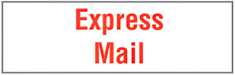 TYPE: Rubber Stamp. IMPRESSION: "EXPRESS MAIL." IMPRESSION SIZE: 1/2"H x 1-11/16"W. INK COLOR: None. MOUNT: Made with ergonomically designed plastic handle, high-quality laser-cut rubber die. PLEASE NOTE: INK PAD SOLD SEPARATELY (). ACCESSORIES: Refill Ink, model numbers N1024685-N1024694, Stamp Pad: model numbers N1015892, N1015447, N1002548-N1002549. SHIPS: USPS.