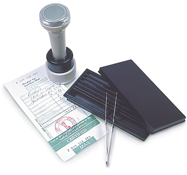Our durable and long-lasting dater features a vertical date format and can record dates for up to 10 years! The curved ergonomic handle eliminates fatigue. Choose from a traditional metal ring base or a new plastic ring base mount style. Choose also from red, blue, black, green or purple ink. Ships USPS.