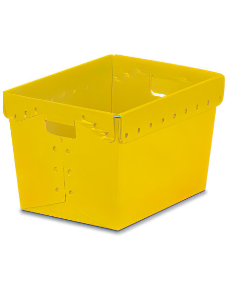 Nestable Totes save space and are durable alternatives to cardboard, molded plastic, and fiberboard. Use these color totes to create an organized color scheme. Totes are wire reinforced and sonic welded, and nest (when assembled) for storage.