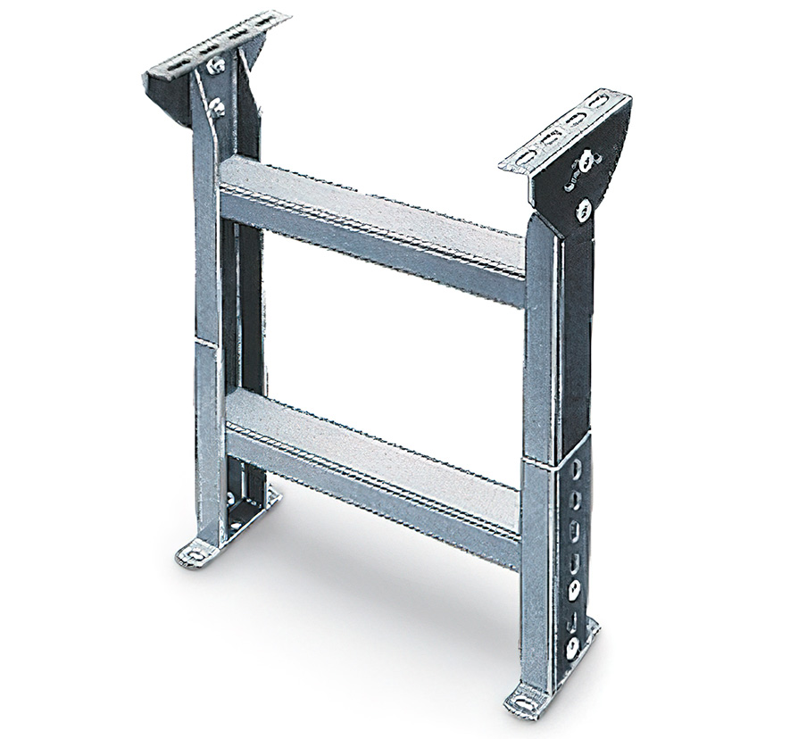 These Stationary Floor Supports can be used in combination with the straight gravity conveyors. Only three supports are necessary to hold two 10 ft. sections. The adjustment to top of conveyor wheel & 1 3/8" roller is 27 3/8" to 39 3/8".