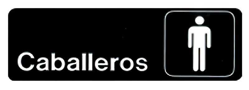 Easy-to-read, 9" x 3" vinyl signs made of 1/8" acrylic with an adhesive back. Brown with White lettering. Choose English or Spanish. This sign reads "Caballero" (Men in Spanish) and is 9" x 3". For Same sign in English, refer to N1004885.