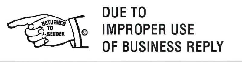These heavy-duty pre-inked stamps deliver thousands of impressions before re-inking. Most ship in 48 hours. The postal stamps read, "Returned to Sender: Due to Improper Use of Business Reply".