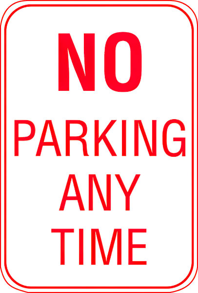 TYPE: STREET SIGN. Aluminum Parking Lot Sign. WORDING: "NO PARKING ANYTIME." SIZE: 12" x 18". COLOR: BLACK ON WHITE. SIGN POSTS: Sold separately. See N1026445. ACCESSORIES N1014758-N1014759 Fence Mount Brackets. SHIPPING: USPS.
