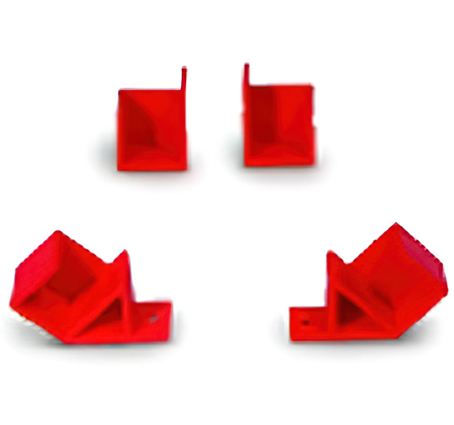 Space saving, specially-designed Mounting Clips allow square tubes to be rotated, utilizing 4-sided labeling. The red, plastic clips fasten directly to case walls.
