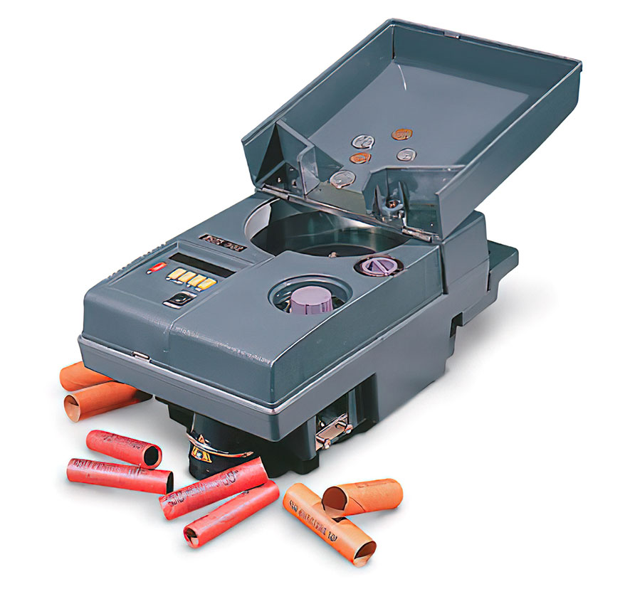 The highly productive unit is setting new standards for portable coin counters. The Scan Coin 303 can accurately count 2,700 coins/minute. This machine performs a "special sort" only. Ex: put a handful of change into the hopper, set the machine to pennies. All pennies will be sorted out, counted, and sleeved. All other coins stay in the hopper. Next, switch the machine to nickels, and so forth.