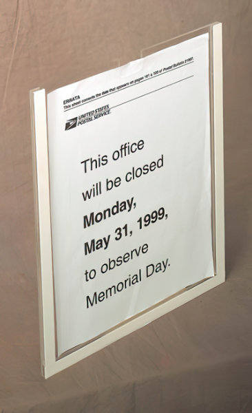 Inform customers of holiday closings with our Holiday Closing Signs. The 8 1/2" x 11" signs slip into these window-mounted, self-adhesive, clear acrylic holders. An easy and clear way to inform customers of office closings! This product is the clear acrylic card holder