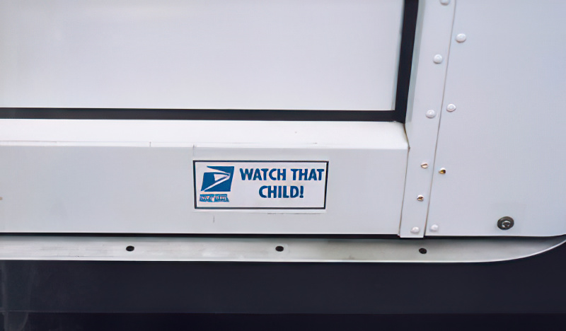 Remind other motorists of children in residential areas by placing our "Watch That Child" safety sticker on back bumpers of your postal vehicles. Each sign features an easy-to-read design with blue lettering on a white background. These postal safety signs also feature the USPS logo and measure 10" x 3". Ships USPS.