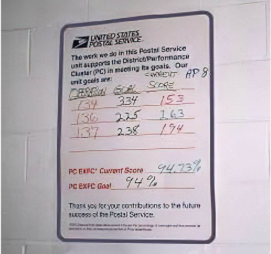 Keep track of employee goals with our Dry Erase Boards. These boards help keep track of the percentage of overnight mail that reaches its destination on time. Utilizes dry erase makers (sold separately).
