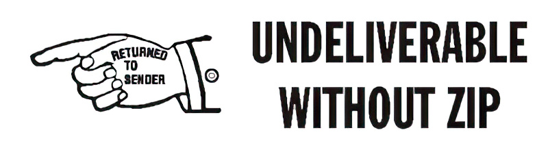 This returned to sender USPS stamp reads, "Undeliverable without zip". The easily refillable phrase stamps are good for thousands of impressions before re-inking. Custom stamps are available with your copy, city, and state.