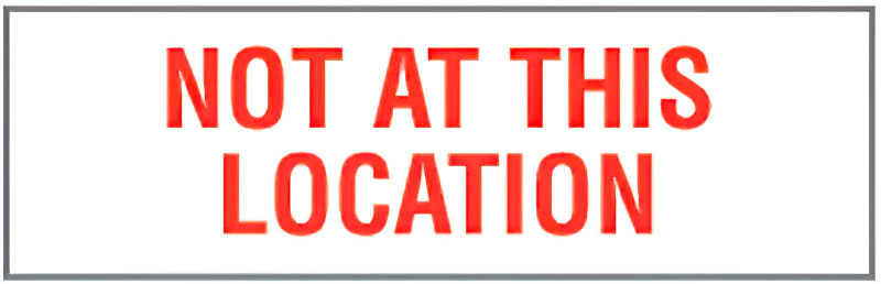 TYPE: Rubber Stamp. IMPRESSION: "NOT AT THIS LOCATION." IMPRESSION SIZE: 1/2"H x 1-11/16"W. INK COLOR: None. MOUNT: Made with ergonomically designed plastic handle, high-quality laser-cut rubber die. PLEASE NOTE: INK PAD SOLD SEPARATELY (). ACCESSORIES: Refill Ink, model numbers N1024685-N1024694, Stamp Pad: model numbers N1015892, N1015447, N1002548-N1002549. SHIPS: USP