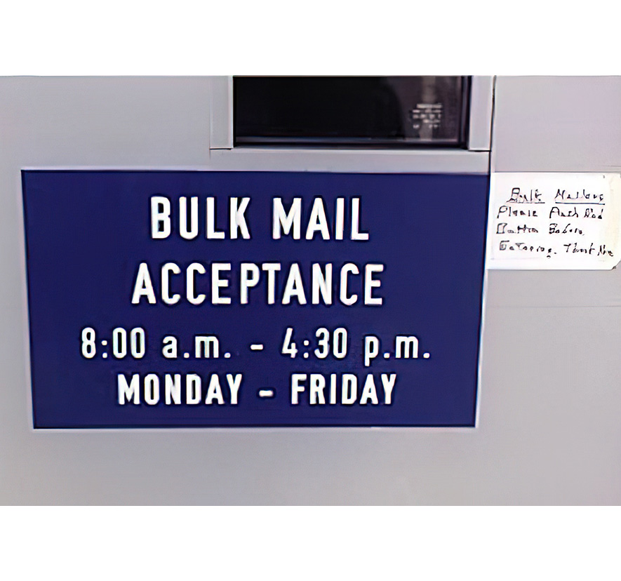 Let customers know what times your bulk mail acceptance department is open. When ordering, please mail or fax your time and day preferences to our Customer Service Department.