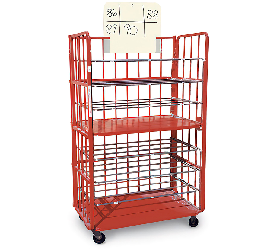 Before our innovative placards, route scheme identification consisted of cardboard taped to the back of a CSBCS cart. Each placard snaps into place without tape (cable ties are used to prevent accidental changes between carts).