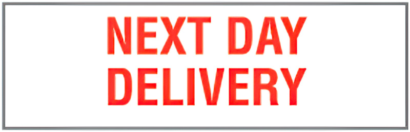 TYPE: Rubber Stamp. IMPRESSION: "NEXT DAY DELIVERY." IMPRESSION SIZE: 1/2"H x 1-11/16"W. INK COLOR: None. MOUNT: Made with ergonomically designed plastic handle, high-quality laser-cut rubber die. PLEASE NOTE: INK PAD SOLD SEPARATELY (). ACCESSORIES: Refill Ink, model numbers N1024685-N1024694, Stamp Pad: model numbers N1015892, N1015447, N1002548-N1002549. SHIPS: USPS.