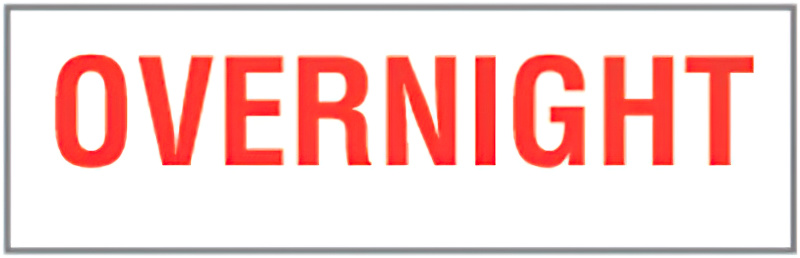 Pre- Inked Small Counter Stamps, OVERNIGHT. Plastic Mount is Standard. Add "T" to Rubber Stamp Model # for Traditional Wooden Handle.