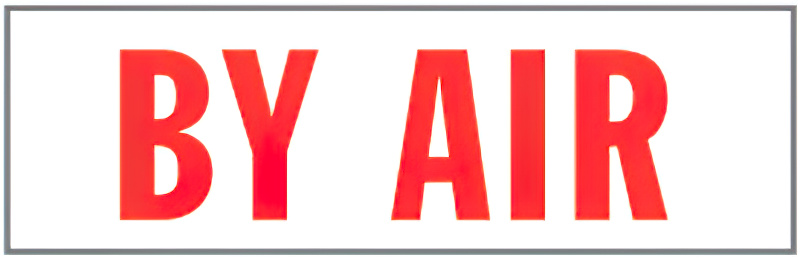TYPE: Rubber Stamp. IMPRESSION: "BY AIR." IMPRESSION SIZE: 1/2"H x 1-11/16"W. INK COLOR: None. MOUNT: Made with ergonomically designed plastic handle, high-quality laser-cut rubber die. PLEASE NOTE: INK PAD SOLD SEPARATELY (). ACCESSORIES: Refill Ink, model numbers N1024685-N1024694, Stamp Pad: model numbers N1015892, N1015447, N1002548-N1002549. SHIPS: USPS.