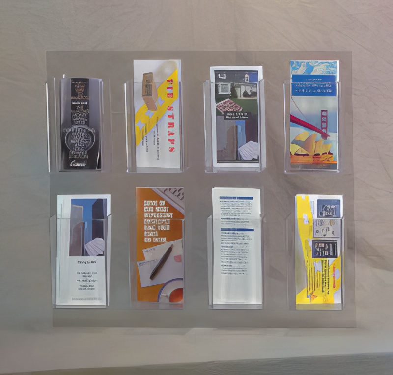 This Changeable Forms Rack contains 8 pockets, great for holding brochures. Call us at 1-800-229-4500 for your custom combination.