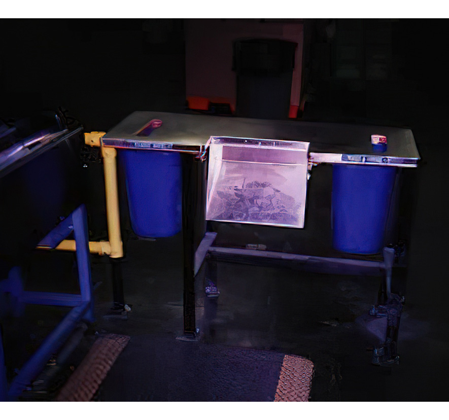 Break down parcels, mail trays, and more on the Standing Working Table. The suspended baskets are labeled for rubber bands, paper, and string.