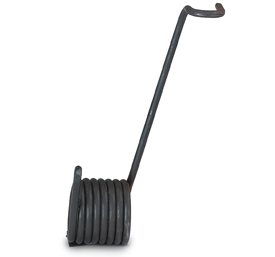 Custom fabricated spring easily installs on the ERMC tow bar. Heavy duty tension keeps the tow bar in an upright position while not in use and underneath the tow pin when being trained.
