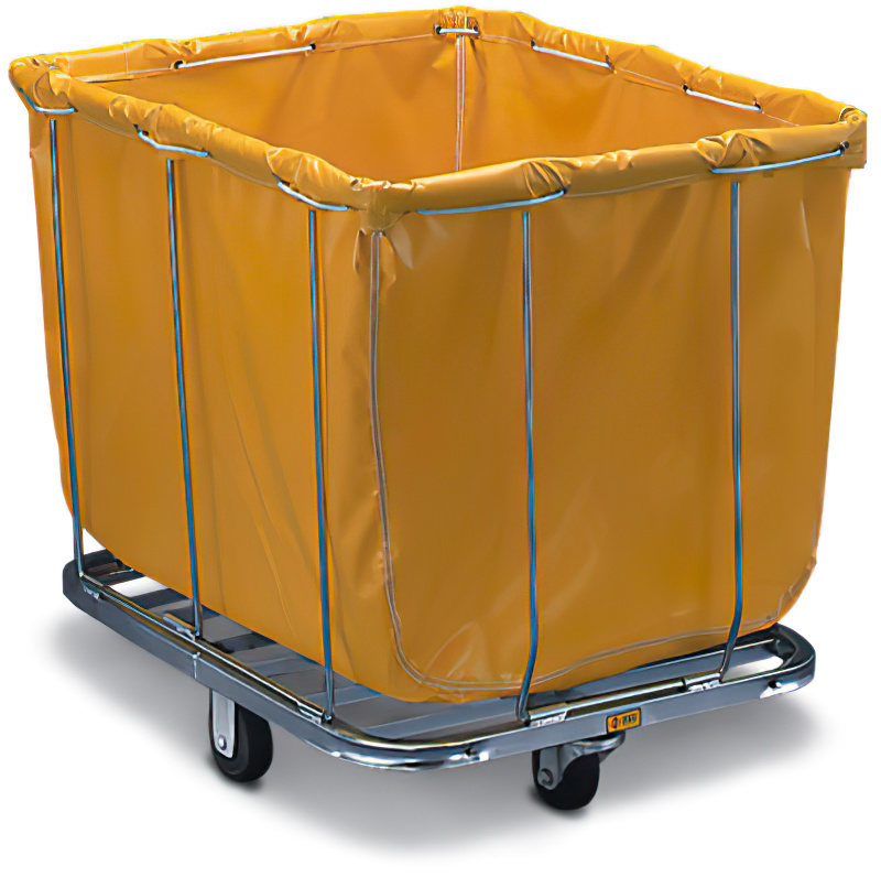 These trucks fold down to allow easy shipping through the United States Postal Service. Trucks are zinc plated with welded steel construction and a strong, flame retardant vinyl/nylon laminate liner that is easy to clean and provides years of use. Trucks are provided with 3-1/2" rigid and two 3" swivel casters. Available in Yellow. Size: 36"L x 26"W x 32"H.