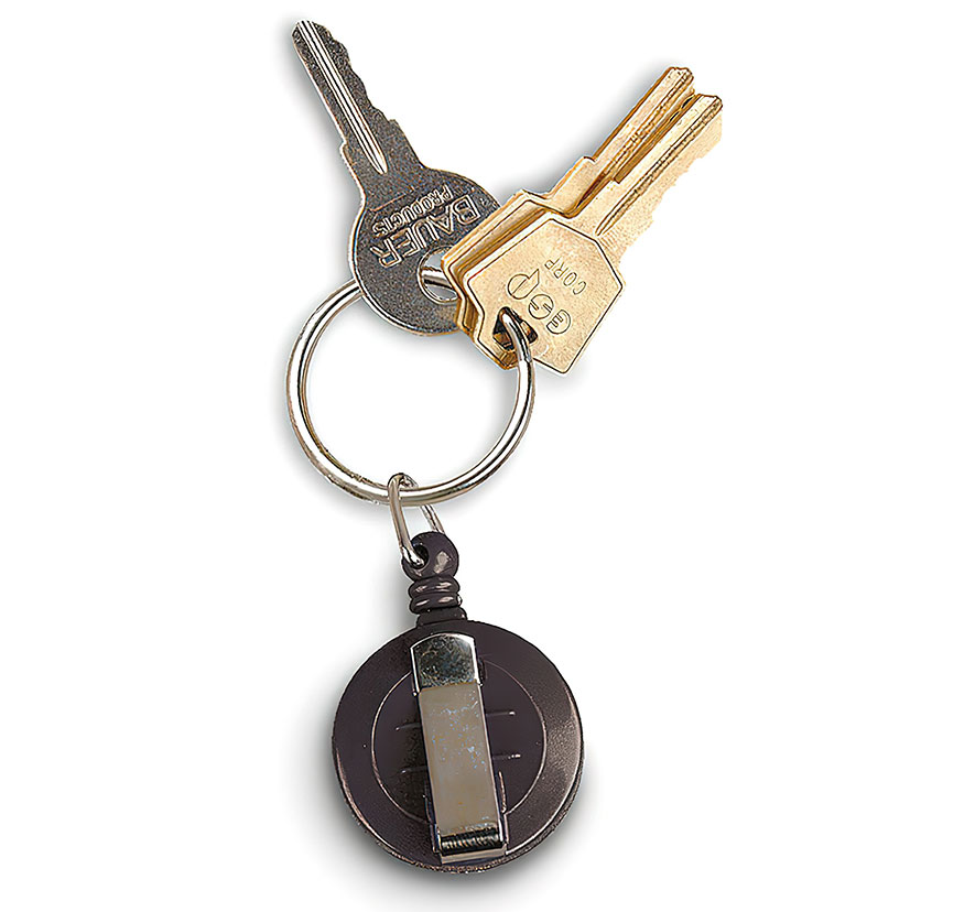 Keep your keys convenient with our black mini Carrier key/badge postal key holders. These keysnappers are perfect for maintenance managers who hold numerous keys. Each keysnapper keychain measures 1 7/16" x 1 1/4" diameter and features a split key ring holder and belt clip standard backing. Ships USPS.