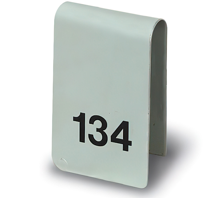 This tag hangs over the side of hampers to identify contents by route number, zip code, etc. Tags can be written on with Black magic marker for easy numbering.